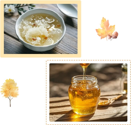 白色食物当令:中医认为白色入肺。莲藕:生津止渴、清热润肺、凉血散瘀。银耳羹(可加莲子、百合、枸杞)是经典润燥甜品。百合:清心润肺、安神止咳。梨:生津润燥、清热化痰。脾胃虚寒者宜熟食。