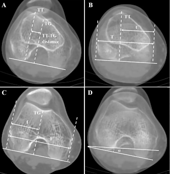 在CT或MRI上测量,它代表了髌腱附着点(胫骨结节)到股骨滑车沟中心的水平距离。这个距离直接反映了牵拉髌骨向外的力量(Q角的概念在影像学上的精确体现)。TT-TG距离大于20mm被视为异常,是髌骨外脱位的重要风险因素。距离越大,向外侧的拉力越大。