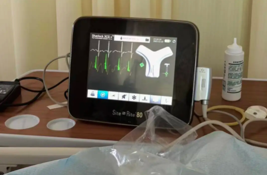 面对这个复杂情况,医院静疗学组在护理部的指导下,由杨护士长迅速牵头评估。考虑到患者治疗周期长、血管条件差、伴有肌张力增高等复杂情况,为建立一条安全、稳定的长期静脉“生命通道”,团队最终决定为患者在右侧实施3CG磁导航PICC(经外周静脉置入中心静脉导管)置管术。